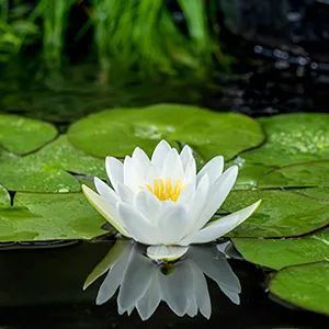 Eén van de bekendste waterplanten en om goede redenen! De bekervormige knoppen openen om de betoverende stervormige witte bloemen met goudkleurige helmknoppen te laten zien. Het groeit in 30-150 cm diep water en is geschikt voor grote vijvers en meren. Het blad kan een diameter hebben tot 30cm en de gehele plant kan een diameter hebben tot 120 cm.