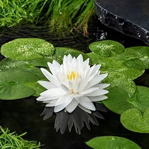 Eén van de bekendste waterplanten en om goede redenen! De bekervormige knoppen openen om de betoverende stervormige witte bloemen met goudkleurige helmknoppen te laten zien. Het groeit in 30-120 cm diep water en is geschikt voor grote vijvers en meren. Het blad kan een diameter hebben tot 20cm en de gehele plant kan een diameter hebben tot 150cm.