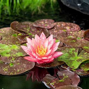 De kleur van de waterlelie scheelt per bloem. De rode/oranje kleur is prachtig, hierin zijn ook witte strepen te zien. Hoe bijzonder is dat. De bloem haalt een diameter van 15cm en de waterdiepte is 60-80cm. Een mooie waterlelie met verschillende kleuren.