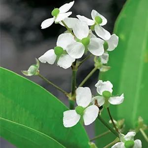Deze Amerikaanse pijlkruidsoort groeit graag langs de waterrand en verdraagt wisselende waterstanden tot zelfs tijdelijke droogte. De plant ontwikkelt twee bladvormen, lijnvormige onderwaterbladeren en grote puntig-lepelvormige bladeren die boven water uitsteken. De plant vormt manlijke en vrouwelijke bloemen. De manlijke zijn tamelijk groot, wit en steken aan hoge stengels in kransen omhoog, de vrouwelijke zitten lager en zien eruit als vrij platte, groene aardbeien. Er zijn zeven ondersoorten bekend die onderling maar weinig verschillen. Voor liefst een plek in de zon en in natte grond tot ondiep water. Matig winterhard.